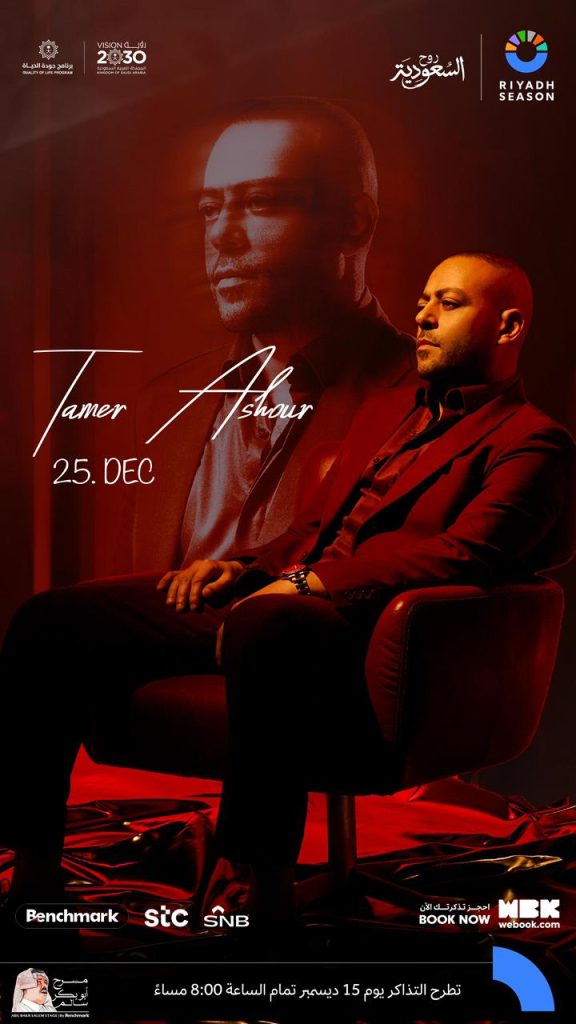 حفل غنائي منتظر في موسم الرياض للفنان تامر عاشور